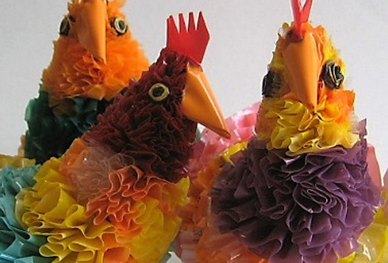 Lustiges Federvieh aus recyceltem Kunststoff produziert Wirework in Südafrika.