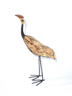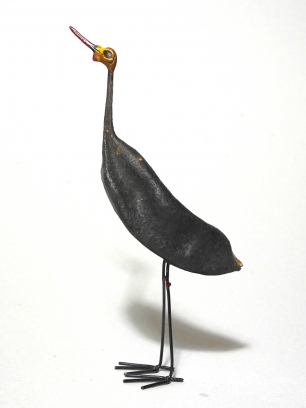 Daniel Mashilo hat seine filigranen Vogelskulpturen aus den Samenkapseln des in Afrika weit verbreiteten australischen Flammenbaums in Handarbeit gestaltet. So trägte er mit seinen kleinen Kunstwerken die Begeisterung für einheimische afrikanische Vögel in die ganze Welt. 1.Secretary bird, 2.Crowned Crane, 3.Flamingo, 4.White Stork, 5.Spoonbill, 6.Hoopoe, 7.Saddle Billed Stork, 8.White Pelican, 9.Ostrich, 10.Ground Hornbill, 11.Blue Crane. Set mit 9 unterschiedlichen Vogelskulpturen aus Samenkapseln. Jedes Stück ein signiertes Unikat! ca. 7 bis 18 cm hoch.