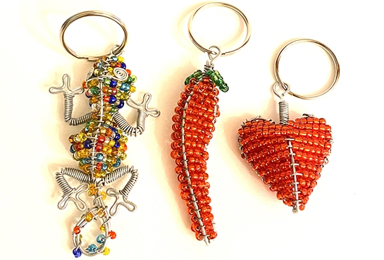 Herz, Peperoni, Gecko und Chamäleon mit Schlüsselring